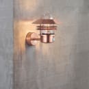 Blokhus væglampen er en del af Nordlux' "Designed For Seaside"-sortiment og fremstillet af ekstra robuste materialer, der sikrer lang holdbarhed – selv i barske, kystnære miljøer. Over tid udvikler kobber en smuk, mørkere patina, der understreger lampens udtryk.